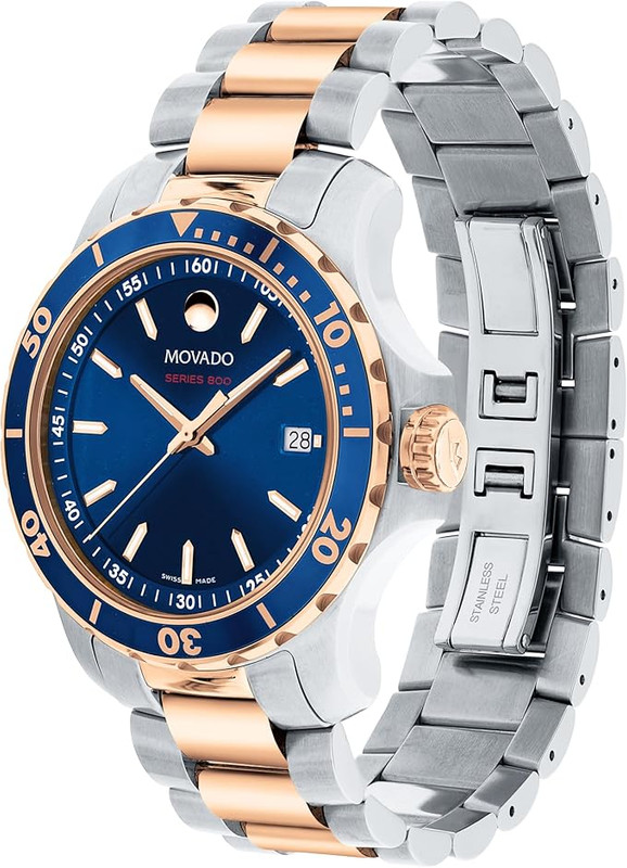 Powered by a Swiss quartz movement, the Series 800 ensures precise and reliable timekeeping. The bold blue dial, luminous hands, and diver-inspired design add a touch of sportiness while maintaining Movado’s signature elegance.